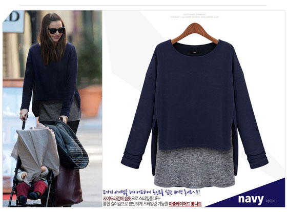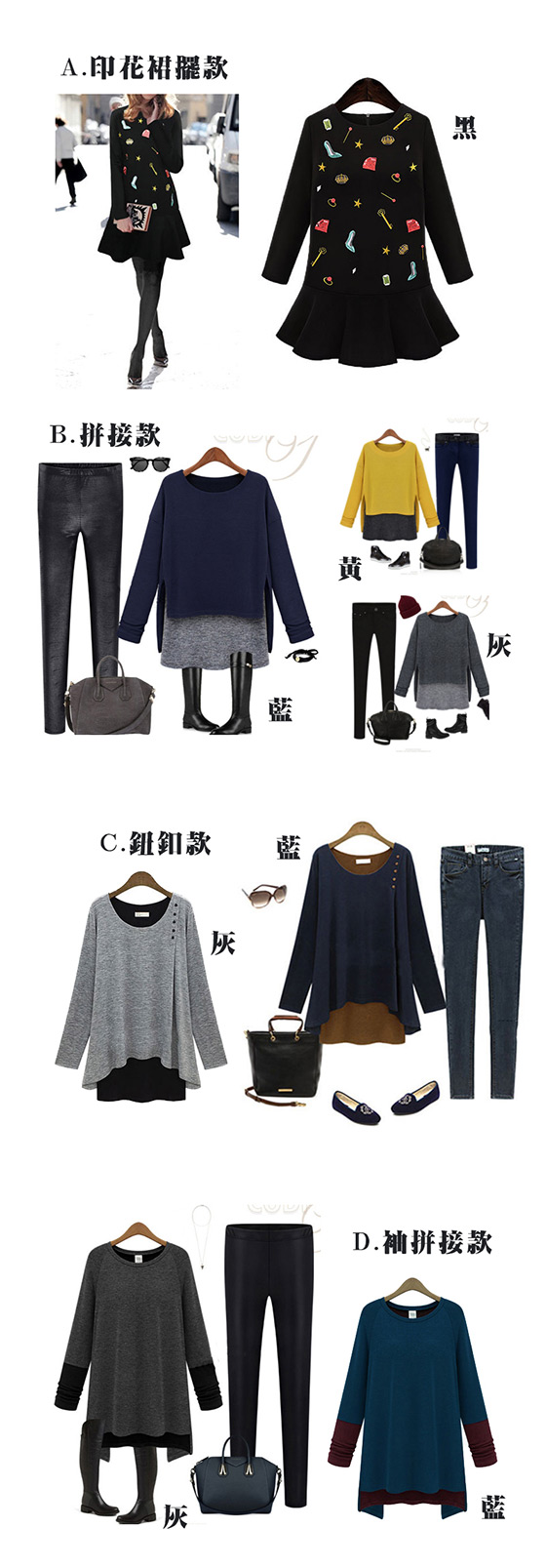 D.袖拼接款(灰/藍)
